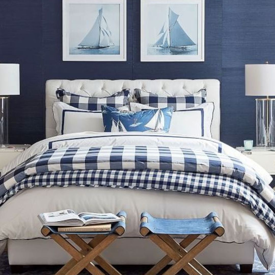 In this coastal bedroom, a nautical-inspired color palette brings that breezy, beachy vibe right home. The soft blues and whites mimic the colors of the ocean and sky, creating a serene atmosphere. The subtle patterns on the bedding add texture without overwhelming the space.
