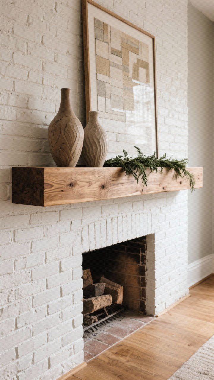 Sometimes all you need is a hero mantel. A chunky beam—real wood or a clever faux wrap—can ground the whole room. Pair it with a fresh coat of paint, and your old brick suddenly looks intentional.