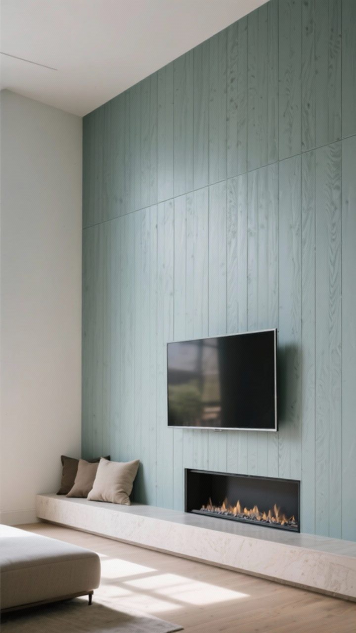 Ready for drama? Extend your surround into a full-height feature wall. Stone, fluted wood, plaster, or even slatted panels make the fireplace look architecturally built-in and instantly taller.