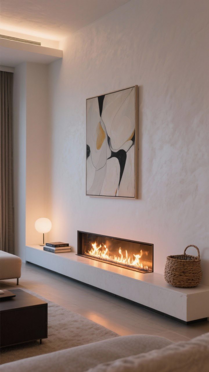 • Streamlined silhouette: No heavy mantel required—just smooth plaster or stone.