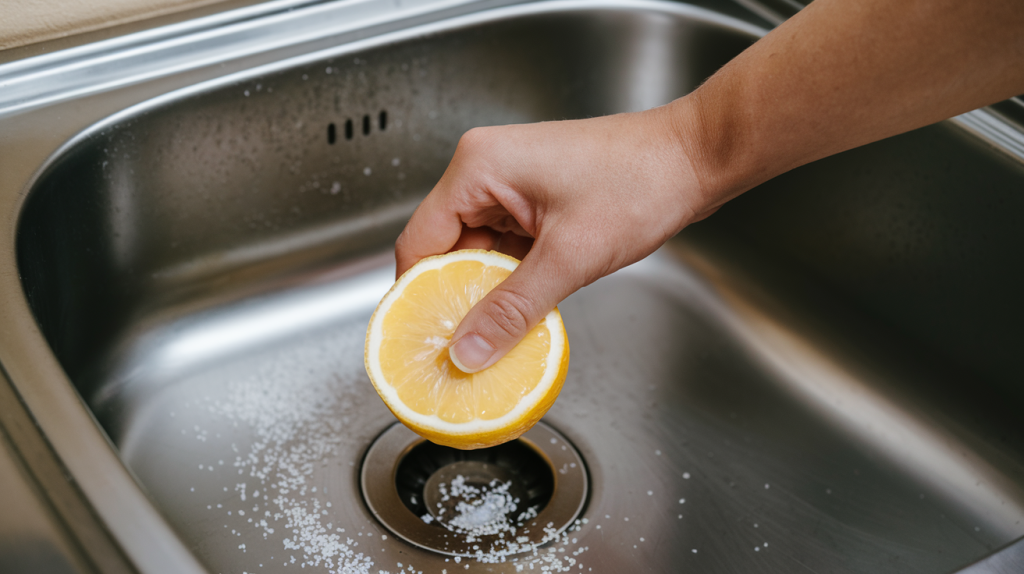 1. The Lemon & Salt Scrub (For Stainless Steel Sinks)